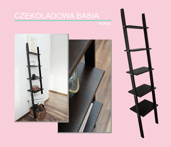 Czekoladowa Basia - dawniej znana jako regał w spiżarni. Jednak jej wyrazisty charakter i elegancja zawiodły ją znacznie dalej. Obecnie najczęściej widywana na salonach, wciąż obsypywana komplementami i dekoracjami. Nie traci formy i budzi zazdrość koleżanek.Drabina jest bejcowana ekologiczną bejcą na bazie wody. Odpowiednio zabezpieczona, wykonana ze sklejki, dzięki czemu jest trwała i nie ulega odkształceniom.Możliwość zamówienia drabinki na indywidualny wymiar. Napisz do nas!W celu złożenia zamówienia napisz do nas naszedomowepielesze@gmail.com lub zadzwoń tel 534 904 099