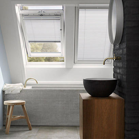 Żaluzja dachowa mocowana jest inwazyjnie w świetle szyby. Prowadzenie boczne – żyłki, zapewniają utrzymanie żaluzji przy szybie przy różnym nachyleniu okna. To co wyróżnia żaluzję, to możliwość kontrolowania kierunku padania światła oraz jego natężenia i intensywność poprzez przechylenie lamelek w dowolnym kierunku bez konieczności podnoszenia i opuszczania żaluzji. Dzięki temu chronisz pomieszczenie przed nadmiernym nagrzewaniem jednocześnie umożliwiając swobodną cyrkulację powietrza. Możesz czuć komfort zachowania prywatności, bez konieczności całkowitego zaciemnienia pomieszczenia. Aluminium, z którego wykonana jest żaluzja cechuje odporność na wilgoć oraz łatwość czyszczenia. Dzięki temu to idealnie w pomieszczeniach wilgotnych np. łazienkach oraz kuchni. Żaluzje aluminiowe dachowe to również bardzo atrakcyjny dodatek do wystroju wnętrza. Dostępne są w wersji Standardowej, Special (lamele grubsze, odcienie także matowe), Drewnopodobnej oraz Perforowanej. Jest to również najtańsze rozwiązanie spośród osłon do okien dachowych.Osłony okienne wykonujemy na indywidualny wymiar. Chcesz poznać wycenę? Napisz do nas naszedomowepielesze@gmail.com lub zadzwoń tel 534 904 099